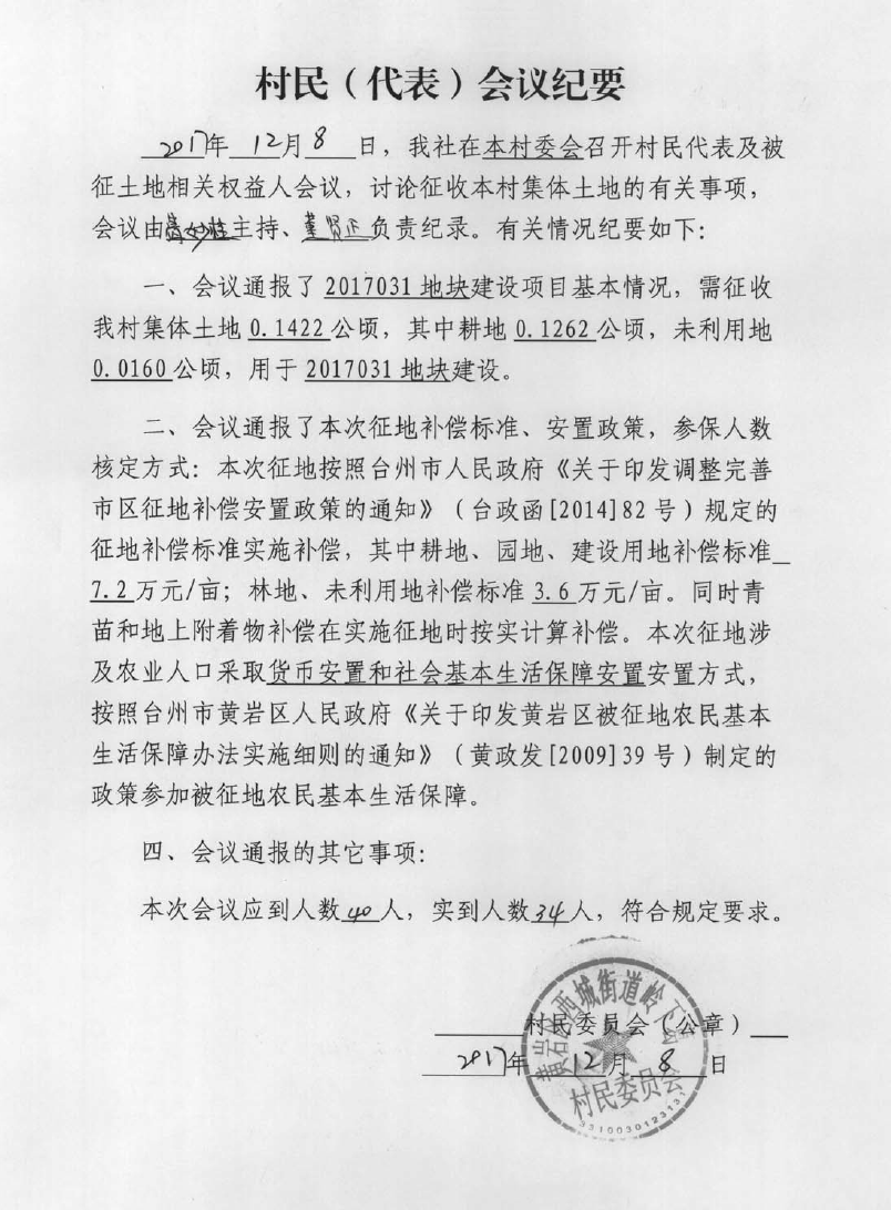 台州市2017年度第4批次(黄岩2)城市建设用地西城街道岭下葛村会议纪要