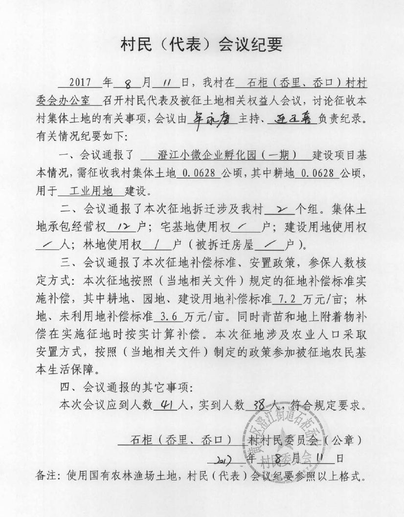 台州市2017年度第4批次(黄岩2)城市建设用地澄江街道石柜岙村会议纪要(一期)