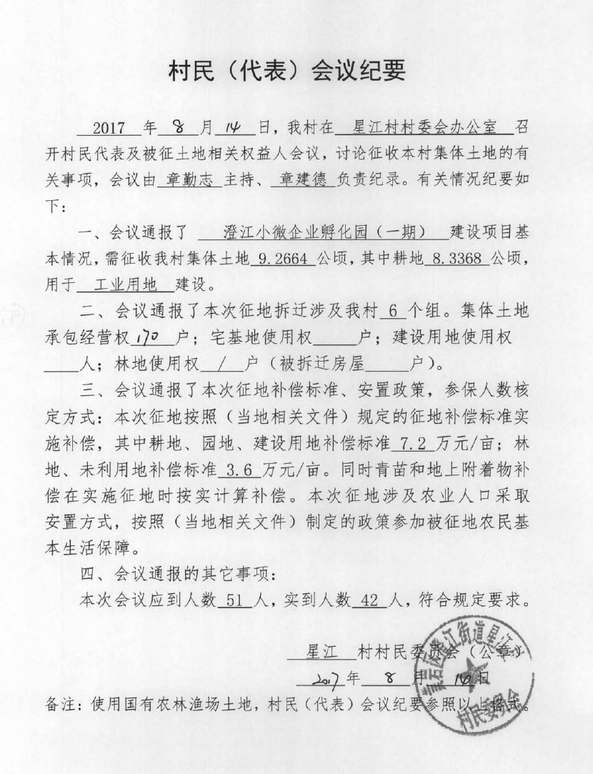 台州市2017年度第4批次(黄岩2)城市建设用地澄江街道星江村会议纪要(一期)