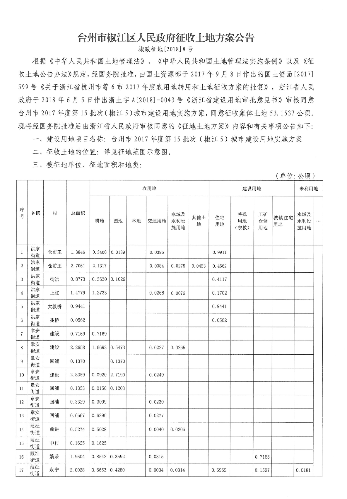 台州市2017年度计划指标第15批次(椒江5)城市建设用地实施方案征收土地公告
